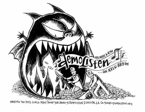 • 6-8pm: Demolisten broadcast from Sancho Gallery, thanks to KXLU. With hosts Fred Kiko and Sean Carnage. “Playing only the best new unsigned music.”