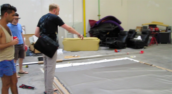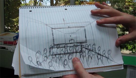 Kid Infinity will not just be appearing in three dimensions. They will use rear projection and sophisticated computer animation to interact with immense 3D graphics. They started their creative process by completely sketching and measuring The Smell, and imagining where the audience will stand. With those vantage points calculated in advance, Ryan and Nathan and their helpers will be able to deliver the most flawless, custom 3D experience anyone attending could ever hope to see.