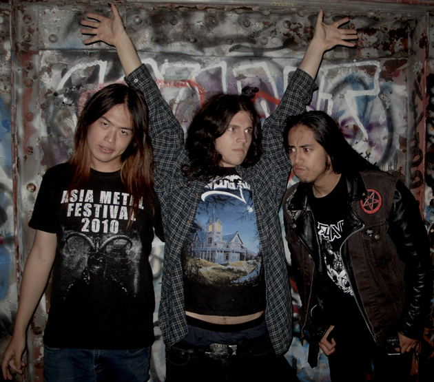 Personnel: Our drummer is Faustino. With his long flowing hair and spicy Latino attitude, he handles the keepage of beats with never-ending rage. On guitar and vocals is Hunter. He travels cloaked in a hurricane of shred and armed with the voice of a thousand earthquakes exploding into one giant Megaquake of Metal. Our newest member is our bass player Chuck. Straight from the horrific jungle of North Korea, this Chinese warrior knows kung fu on bass.