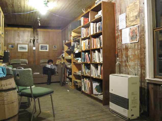 Inside the boxcars there were a couple couches, a record player, and a pretty extensive zine and book collection. They made us an awesome dinner and got a couple bonfires going outside the boxcars. We played inside one of the train cars to a small but very enthusiastic audience. We both agreed that this was one of the most awesome places we’d ever played, and the people there were incredibly nice and warm hearted. After the show a guy named Ben Homer smoked us out of a coconut bubbler (which we just couldnt refuse doing seeing where we were), and kept telling us that we should track down his friend Matt Hopper when we get to Idaho (anyone know this guy?). All in all it was a brisk and absolutely beautiful night.