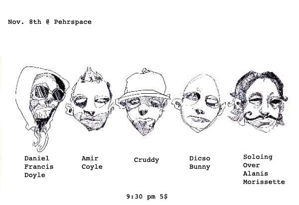 Next show: This Monday night at Pehrspace, with Daniel Francis Doyle, Amir Coyle, Cruddy and—just added—Soloing Over Alanis Morissette